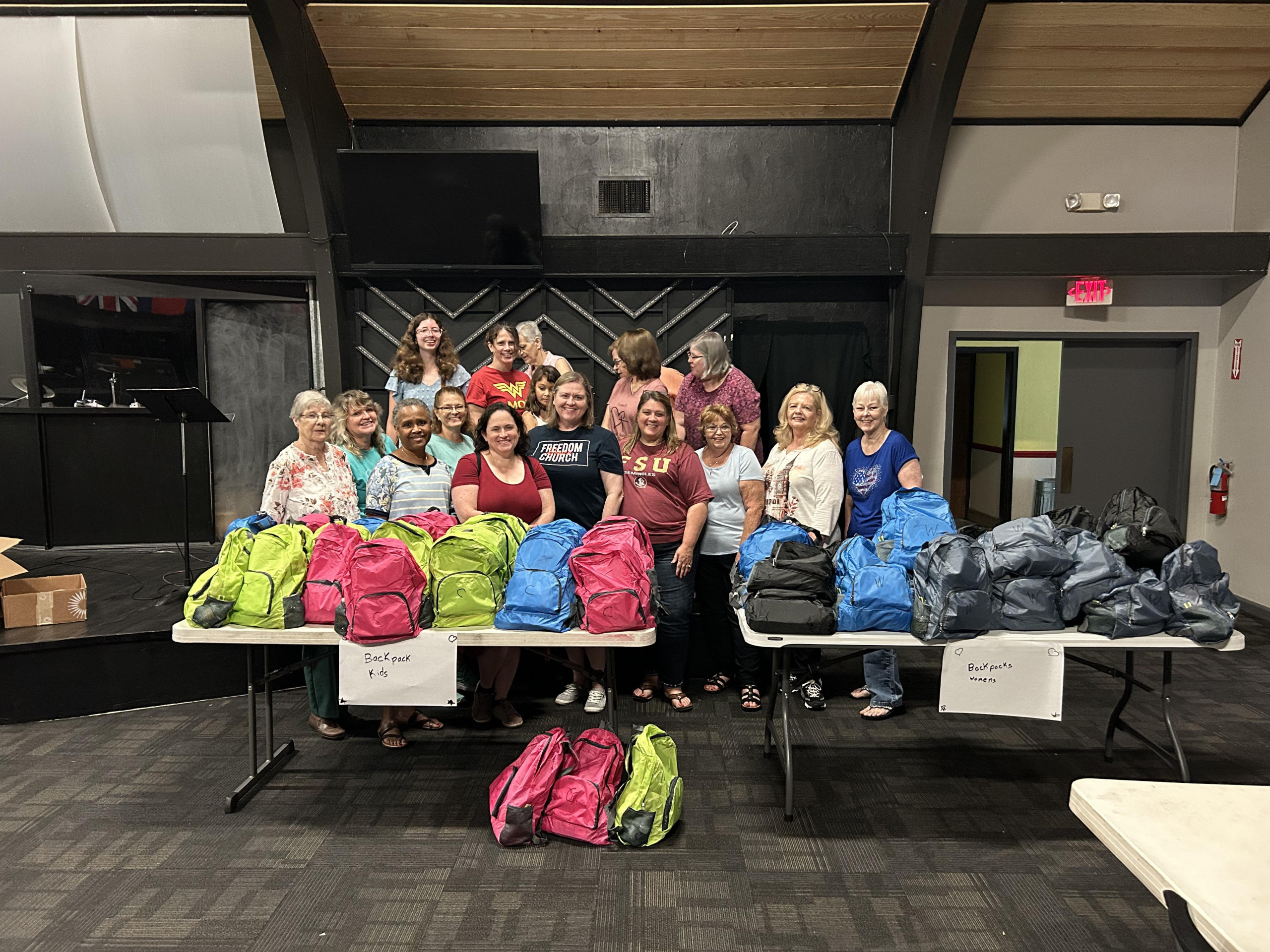 In the month of June the Women’s ministry is working on a Be the Light Project: Backpacks for homeless women and children. On June 15, the ladies gathered to stuff the backpacks, and June 22 they will go out to distribute them. The project is another way Freedom Church is being the light in the Tallahassee area. .